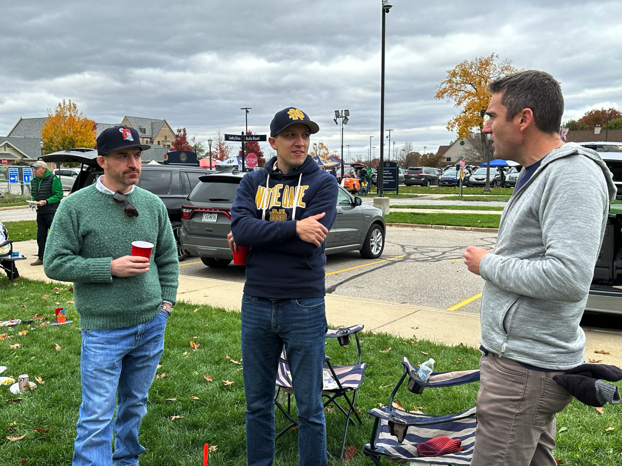 OZ Insiders hosted a tailgate party before the Notre Dame vs. Pittsburgh football game, the day after Jimmy Atkinson and Andy Hagans delivered the first-ever in-person Masterclass on “High Impact Opportunity Zone Projects” for ND’s Fitzgerald Institute for Real Estate (FIRE).